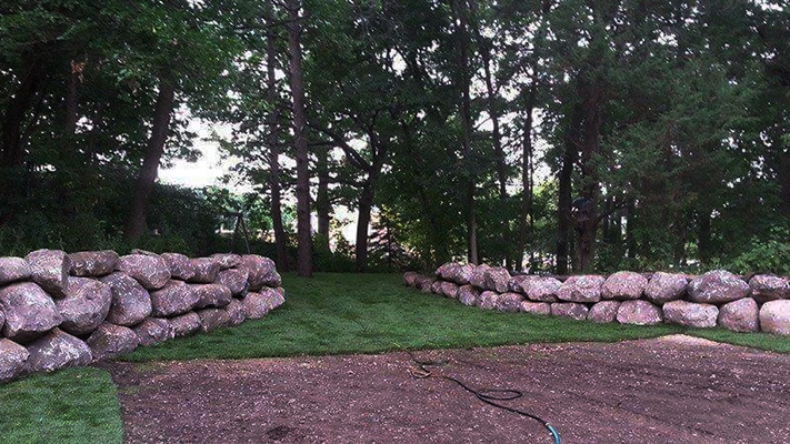 Boulder-Walls are a form of the oldest and longest lasting type of retaining walls. They are actually natural stone walls. Rather than being made of smaller stones, they are typically built of fieldstone boulders. Fieldstone or glacial boulders are very common, especially here in the Midwest and Minnesota.