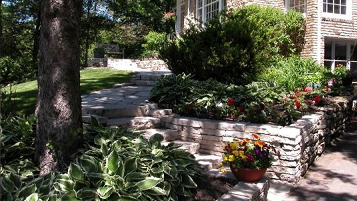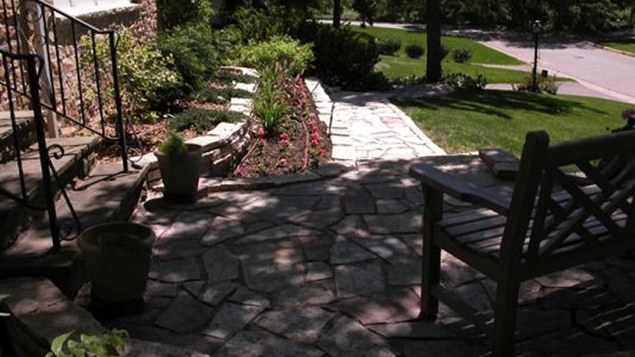 A more common use for natural stone in landscaping today is to use large flat pieces of stone as stepping-stones, for patios and stairs. They provide a decorative natural look for a more formal look.